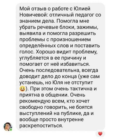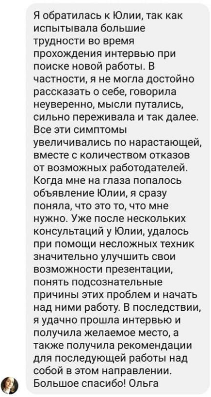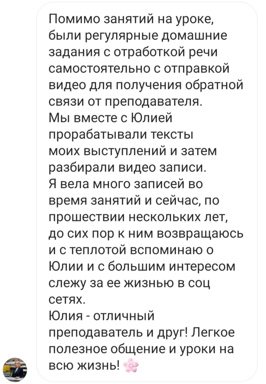 Так же проводила занятия и готовила к интервью чемпиона Европы по дзюдо, дипломата одного из российских посольств в Европе, студентку Стенфордского университета.
